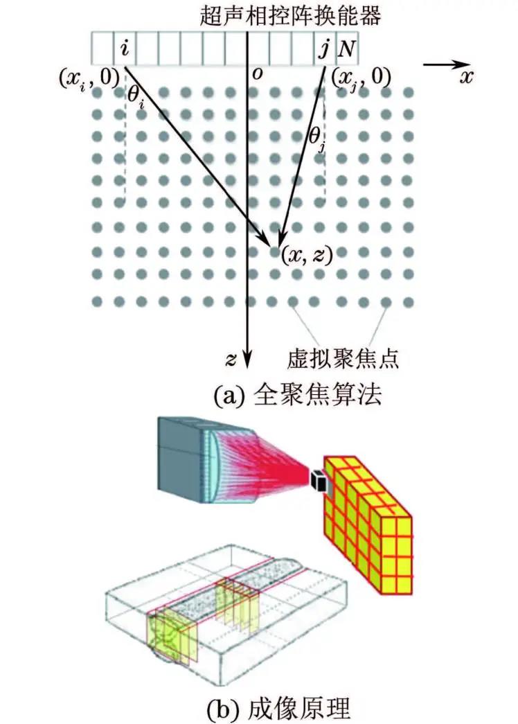 圖2 全聚焦成像算法和成像原理示意